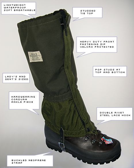 WATERPROOF- BREATHABLE- WASHABLE_ Quiet, Front fastening - Velcro protected zip- BIOTHANE ( strond strapping used for bridles etc) buckled strap -- Lace front tie with studs top and bottom- Metal clip to fasten to boot laces- Best by test from Keepers- Best working gaiter on the market today. Small gaiters are 15" zip ** MADE IN THE UK;; LADIES ( Small for ladies up to 5,6" Gents sizes16" zip-Medium up to 18" calf/Large up to 19" calf and XL up to 21" calf. NB *Discount of £10.00 if bought with boots Colour Green all Sizes - Blue - Large/Med only